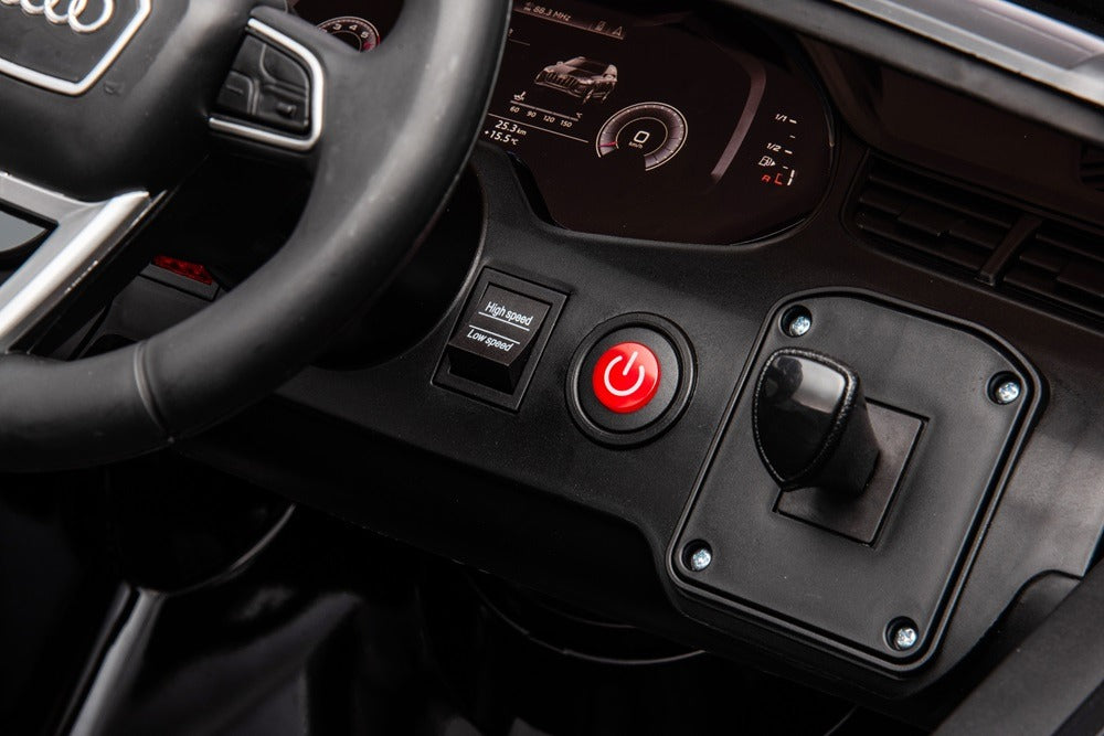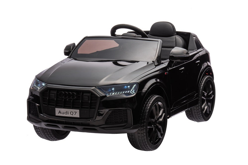 Dit prachtige kinder accu voertuig is geproduceerd onder de licentie van Audi. De uiterst sportieve Audi Q7 is voorzien van dubbele 12 volt motoren en heeft 3 verstelbare snelheden tot 5 km per uur. Dankzij de "soft start" functie voelen kinderen geen schokje bij het optrekken. De snelheid wordt rustig opgebouwd. De auto rijdt zowel met het gaspedaal als met de meegeleverde 2.4 GHz afstandsbediening.