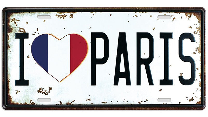 Metalen wandbord | I love Paris | Kentekenplaat | 15x30cm |
