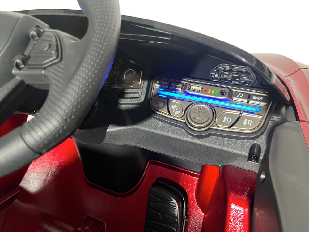 Het design van de Lamborghini Revuelto straalt luxe en verfijning uit, mede dankzij de hoogwaardige hoogglans lakafwerking die de auto een strakke, glanzende look geeft. De LED-verlichting in de koplampen en achterlichten zorgt niet alleen voor een coole uitstraling, maar maakt de auto ook goed zichtbaar in het donker. Bij het starten hoor je realistische motorgeluiden, wat de rijervaring nog authentieker maakt. Bovendien kunnen kinderen genieten van hun favoriete muziek dankzij de geïntegreerde muziekmodule, die een MP4- en USB-ingang heeft, evenals Bluetooth-verbinding, zodat je eenvoudig je afspeellijsten kunt afspelen.